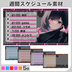 【内容】 週間スケジュール素材 背景×1 オーバーレイ×1 形式;png サイズ:1280×720px ・ピンク ・ブルー ・レッド ・パープル ・オレンジ 全色セットがダウンロードできます。お好みのものをご使用ください!