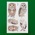 フクロウのイラストを転写タトゥーシールにしました。 画面上、白地に見える部分は実際には透明になります。 貼り付けたときには、写真とは左右反転します。 フクロウのイラスト3種をサイズにバリエーションをつけて収録しました。 全5点(サイズ大 3点、サイズ小 2点) 絵柄のサイズ サイズ大 長辺60〜70mm、サイズ小 長辺50mm。 水で湿らせて貼り付けるだけなので簡単。はがすこともすぐできます。 タトゥーシールとして肌につける以外にも、プラスチックや金属など表面がなめらかなものに貼り付けられます。 【素材】 市販の転写シール 透明タイプ 【サイズ】 幅100×高さ148mm(はがきサイズ) 【購入の際の注意点】 表面の粗いものにはきれいに転写できません。 水を使って転写させるため、紙など水に弱いものには転写できません。 肌に転写した場合は一日を目安にはがしてください。 シートは湿気を吸いやすい性質があるので、なるべく早めにお使いください。
