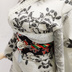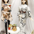 モデル:Smartdoll(LS胸)、DD(M胸) セット内容 ・着物 ・帯 ・帯締め ・帯枕 ・補正用腹巻 (ドール本体、上記以外のアクセサリー、撮影用小物は付属しません) Smartdollサイズのレディース用着物です。 通常の着物だとお胸がはだけてしまう。大きめバストでも衿をきちんと閉じたい。そんな方のためにおつくりました。 可愛い冬柄の生地を見つけたので、着物にしてみました。 植物で描かれる雪の結晶のかたちをお楽しみください。 帯はスナップボタンで簡単ワンタッチ装着。 お端折りを内側に折り込むことで、他のお手持ちの着物とコーディネートしていただくこともできます。 Smartdoll背面のスタンド用スリットがあります。帯で隠れるのでDD等の着用でも気になりません。 生地の使う場所により、柄の出方はランダムになります。また、帯の柄も変更する可能性がございますので、画像と異なる場合があります。予めご了承ください。 着付けの手順はプリントしたものを別途同梱いたします。細かいリボン結びが多いので頑張りましょう。 着付け用のリボンは予告なく素材を変更する場合がございます。予めご了承ください。 補正用腹巻はドールのくびれをなだらかにし、摩擦を生むことで着崩れしにくくします。 こちらは浴衣のみ洗濯OKです。Smartdollの外皮で一週間程度色移りチェックをしておりますが、気温や湿度などの環境により変化がございますのでご注意ください。時々ご確認いただき、着せっぱなしはお薦めいたしません。