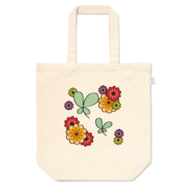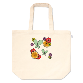 トートバッグ・蝶のような四つ葉のクローバーと花