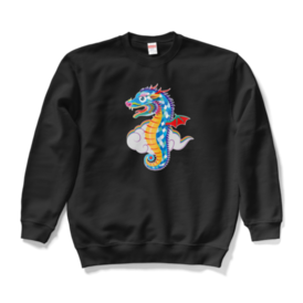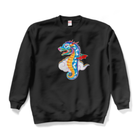 スウェット - XL - ブラックタツノオトシゴのカラフルなデザインイラストです この商品はpixivFACTORYで作られた商品です。サンプル画像は完成イメージのため、実物と異なる場合があります。