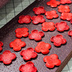 アルの財布:チャールトン ムツキの花飾り:プエブロ(レッド) カヨコのパッチ:ブテロ(ブレック) ハルカのキーリング:プエブロ(ブレック)、パルマドッグ(ホワイト) 糸: Lin Cable 532, Campbell Braided Polyester Thread Sewlo (キーリング)