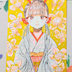 ご成約済【一点もの原画葉書】桜と辰の少女【コピック】