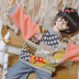 おはな、きのこ、ネコちゃんも! 色柄様々のニットを合わせてニットトレーナーにしました。ポイントで縫いつけたレースがナチュラルだけどすっごくキュート𖤐 ̖́- 派手すぎない落ち着いた雰囲気のやさしい優しい1枚です。 後ろで開いてスナップボタンを留めて着るようになっています。 さむ~い季節もいっぱいオシャレ楽しんでね❣️