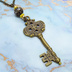アンティークゴールド ゴシック調カギ(鍵)とブラックカラーメタルビーズを組合せたク風ネックレス 長さ調整可 アジャスター可