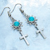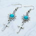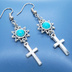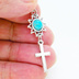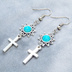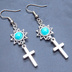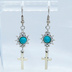 アンティークシルバー ロザリオとひまわり(ターコイズ)を組合せたコンパクトなピアス サージカル可