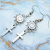 アンティークシルバーカラーのフラットなロザリオとともにターコイズを載せて輝くチャームを組合せたピアスです コンパクトでシンプルなので、普段使いはもちろんのこと、ちょっとしたお出かけにももオススメです レディースはもちろんのこと、メンズとしてもぴったりなアクセサリーです ※別カラーバージョンもございます ※素材はモチーフは亜鉛合金にメッキ、金具はスチール製です。金属アレルギーの方はご注意ください ※こちらはフックピアスをネジバネ式イヤリング(シルバーカラー丸皿タイプ)に変更が可能です ※金属アレルギーになりにくいとされるサージカルステンレスのフックピアスに変更できます 「素材」 モチーフ:亜鉛合金 ターコイズ スチール等(ピアス金具など) 「寸法」 全長サイズ(ピアス部含めず):約35mm ロザリオサイズ:約18×9mm 重量:(ピアスの場合・1個で) 約1.9グラム 【ご注意】 ※ご使用のモニターの色の違いにより、実際の商品と色味が若干異なる場合がございます。 NA-ER166
