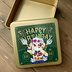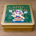 💎さんのハピバ缶です。 紅茶の缶イメージの レトロなデザインにしました。 印刷部分がすこしぷっくりしています。 ゴールド缶はマットですが、 表面が細かい砂地になっているので、 光があたるとキラキラします。