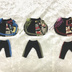 ※ドール、ウィッグ、シューズは含まれません。 ※モデルはヘッドおよびボディは株式会社グッドスマイルカンパニー様のねんどろいどおよびねんどろいどどーるです。 ヘッドのキャラクターはPCブラウザ・スマホアプリゲーム『刀剣乱舞-ONLINE-』の一期一振です。 ※写真はサンプル商品です。実際の商品とは柄の入り方など違います。 ※柄の入り方などは選べませんのでご了承下さいませ。 上着は綿の和柄布と黒のブロード、裏地には表と同じ和柄布を使用し制作しました。 前でスナップボタン留め。上着縁にブレードをたたきました。 胸元にアジアン紐で作った飾りを縫いつけています。 長ズボンは黒のブロードを使用し制作し、サイドにブレードをたたきました。 ウエストはゴムになっております。 ブレスレットはチェコガラスにゴムテグスを通して作りました。 製作はミシン縫いおよび手縫いを多様しております。 端の始末はピンキングまたはロックミシン、手縫いでのまつり縫いで処理しております。 ※裏地には和柄布を使用しておりますが、同布をわが子にしばらく着用させ、色移りがないことを確認しました。 なお、洗濯等して濡らされますと色が落ちやすくなります。 洗濯等された後の着用につきましては自己責任でお願いします。 【互換性について】 着用写真はねんどろいどどーるボディですが、オビツ11にも着用可能です。 ☆同デザインのもちもちマスコットサイズ、もちもちマスコットミニサイズのお洋服も頒布しております。 合わせてご覧ください。