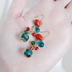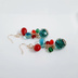 とんぼ玉ビーズが揺れる☆しずくとガラスビーズのプチジャラジャラピアス/イヤリング(クリスマスカラー)