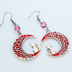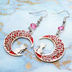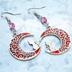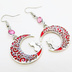 ルビーレッド 猫が座る三日月チャームとラインストーンのピアス アンティークシルバー レジン サージカル可