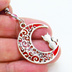 アンティークシルバーの猫が座っているアラベスク調の透かし模様の入った三日月チャームに、透き通ったルビーレッドのレジンで彩色したピアスです 見た目にも鮮やかなシルバーとレッドのコントラストは見るものを魅了いたします 三日月チャームは表面をクリアレジンにてぷっくりとなめらかに仕上げて輝きを持たせてあります さらに青い三日月チャームにあうようにピンクのラインストーンをプラスしてあります 青好きな方はもちろんのこと、ちょっと普段とは違った魅力を演出できるアイテムに仕上がりました ※別カラーバージョンもございます ※モチーフとフープは真鍮にメッキ加工、金具などはスチール製ですので、金属アレルギーの方はご注意ください ※こちらはフックピアスをネジバネ式イヤリング(シルバーカラーの丸皿タイプ)に変更が可能です ※金属アレルギーになりにくいとされるサージカルステンレスのフックピアスに変更できます 「素材」 チャーム:亜鉛合金メッキ加工・レジン ピンクカラーラインストーン スチール・合金(金具など) 「寸法」 三日月猫サイズ:直径約27mm ラインストーン:直径約6mm 重量:(一個で)約3.2グラム 【ご注意】 ※ご使用のモニターの色の違いにより、実際の商品と色味が若干異なる場合がございます NN-ER364