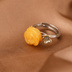 薔薇と琥珀の上品なリング-華やかさとエレガントさを演出R214