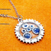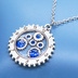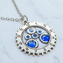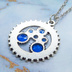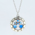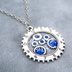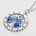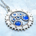 アンティークシルバー 時計と歯車をあわせたチャームをマリンブルーで彩色したペンダントネックレス レジン 長さ調整可
