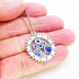 レジンでマリンブルーで彩色を施した時計と歯車をあわせたチャームを使ったペンダントネックレスです 隙間の開いている部分は透明なレジンにてうめてあり表面をなめらかにしてあります マリンブルーの歯車にはシルバーのラメを散らして彩りを加えています アンティークシルバーとマリンブルーの相性の良いカラーの組合せでチャームの魅力を引き出します シンプルでありながらもユニークなチャームのネックレスに仕上がりました 男女問わずお使いいただけるアイテムです お出かけ用にもちょっとしたおしゃれにご利用いただけます ※別カラーのバージョンもございます ※モチーフ・チャームは亜鉛合金にメッキ加工・レジン、チェーンは鉄製にメッキ加工です 金属アレルギーの方はご注意ください ※標準でチェーンの長さは約40cmですが、長さを45cm、50cmに調整できます ※アジャスター(約5cm)を追加できます 【材質】 ペンダント:亜鉛合金:メッキ加工 レジン チェーン:鉄製:メッキ加工 【サイズ】 ペンダントサイズ:直径約24mm チェーン:長さ:約40cm 重量:約4.9グラム ※ご使用のモニターの色の違いにより、実際の商品と色味が若干異なる場合がございます。予めご了承ください NA-NK192