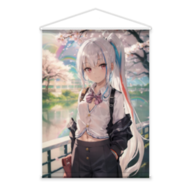 桜の下でへそ出しリズベッドちゃんタペストリー