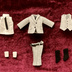 ねんどろいどどーるボディが着用出来るスリーピースのセットになります。ねんどーるの身長調整には対応しておりません。 ジャケット、パンツ、ベスト、ベルト、靴下、シャツ、袖口、ネクタイの8点セットです(靴は含まれません) ジャケット、パンツのポケットは物が入れられる仕様ですが繊細な作りなのであまり力を加えると破損の恐れがあります。お取り扱いは丁寧にお願いいたします。 ネクタイは首の部分がゴムになっていて首を外して引っ掛けて付けるタイプです。ヘッドが取れないタイプのドールは付けられませんのでご注意下さい。 ジャケットは身頃のみ裏地付き、前はホックで留めるタイプです。ホックはメス側が付いてますが間違いではなくあまり目立たないようにしたい為あえて使っています。 3mm磁石を2点付けますのでネクタイを留めるのにお使いください。詳しい使用方法やその他細かい仕様はブログで説明しています。(http://monco102.blog.fc2.com/blog-entry-13.html) 黒、ライトグレー、グレーのセットはシャツの色が白、ネクタイとベルトが黒、白のスーツセットはシャツの色がブルー、ネクタイとベルトが白です。 また白とライトグレーのセットは靴下が白、グレーと黒のセットは靴下が黒になります。 またジャケットの前のボタンは2.5mmのボタンを使っているのですがもう手に入らない為、無くなり次第3mmのボタンに変更となります(最後の画像参照) 他の色と組み合わせたい場合は単品販売をご利用下さい。 単品はそれぞれに手数料がかかるのでセットよりも割高になりますのでご了承の上お申し込み下さい。 ねんどーるボディはオビツ11ボディと比べ、色移りしやすい為着せたままにしないようご注意ください。 1月24日(水)23:59まで受注予定です。 受注なので注文数によって発送できる時期が変わってきますので予想が立てづらく予定より発送が前後する事があります。ご了承ください。発送時期が分かり次第こちらのページの発送時期を更新致します。 発送方法は発送方法はあんしんBOOTHパック宅急便60サイズ(¥ 860 〜 ¥ 1,960)になります。