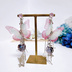 【紅花 - 約束 -】ビジュー&蝶々 3way チェーンピアス -Silver ver.-