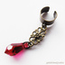 花モチーフのコネクターの下でこっくりとした赤色の雫型スワロフスキーが揺れるアンティーク調のイヤーカフです。 1つ売り(片耳用)です。 【サイズ】イヤカフ部分 : 幅約6mm / 飾り部分 : 約31×7mm ******************************************** 【購入の際の注意点】 ※全てを手作業で制作しておりますので作品ごとに色や形がわずかに異なる一点ものとしてご理解ください。 ※ご購入前に作品の「サイズ」や「素材」を十分にご確認頂きますようお願い致します。 ※画面上と実物では色が異なって見える場合があります。ご不明な点がありましたら、お問い合わせください。 ※落下や無理な力が加わりますと、破損の原因になりますのでご注意ください。 ※ご注文完了後、お客様都合(イメージと違う等)による交換・キャンセル・返品はお受け致しかねますことをご了承ください。 ※配送事故や配送中の故障などについては当方で責任を負いかねますことをご了承下さい。 ※お知らせいただいた宛先に不備があり戻ってきた場合、再送にかかる送料(300円)を追加で請求させていただきます。 登録住所をよくご確認の上ご注文ください。