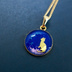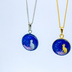 直径15mmの丸い世界の中に、 たたずむネコたちを詰め込んだ小さな世界のネックレスです。 シンプルなデザインを意識し、 背景のブルーが映えるように深みのあるブルーのウルトラマリンと 下部からオーロラカラーで着彩しました。 オーロラカラーは粒子が少し粗くなっており、 ウルトラマリンの色との境界の部分で ピンクやグリーン、紫や水色など様々な発色を見せてくれます。 外枠の金具の色に合わせて、内部の猫のシルエットも ゴールド金具とシルバー金具で統一しました。 濃いブルーとオーロラの輝きが映えるネックレスです。 ★★大きさ&素材など★★ 台座部分の金具の色:シルバー、ゴールド チェーン:喜平チェーン40cm Size:円の直径15mm 内部ネコモチーフ:ゴールドorシルバー チェーンの長さは約40cm。アジャスターはついていません。 アジャスターをご希望の場合は、オプションよりご選択ください。