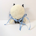 ホワイトのニットに、垂れうさ耳と長いリボンをデコレーションしたニットベレー帽です。 ☆リボンの色味は、水色以外に4種類ご用意しました。水色以外のリボンご希望の場合、購入後にメッセージでお伝えください(メッセージがなければ水色リボンのご用意となります)。 メッセージ記入例:「リボンは①イエローに変更希望。」 ※間違いを防ぐため、なるべく『色番号とカラー名』両方伝えてください。 ☆リボンは接着剤・縫い糸等で固定する予定ですが、固定しないほうがよい(結ぶだけの)場合は、リボンのお色味と同時にお伝えください。 ☆画像内ぬい着用ブラウス↓ 『10cmぬい服 千鳥柄フリルブラウス』 https://takoyuka.booth.pm/items/5449238 ☆うさぎしっぽケープとのセット↓ 『10cmぬい服 リボン付きけも耳ベレー&ケープセット うさぎ』 https://takoyuka.booth.pm/items/5469424 〇サイズ 《ベレー》直径約8cm 《うさ耳部分》約5cm 《リボン》7.5~8cm 〇その他 ・ハンドメイド作品のため、接着剤付着やパーツの位置ズレ等にご理解お願いします。 ・サイズ感は、ツイステEXぬいぐるみ(骨入り)をモデルに製作しております。 ・ベレーは髪の毛のデザインによって被せづらい場合がございます。髪の毛の形状を今一度ご確認ください。 ※商品画像中のぬいぐるみ等小物は付属しません。 ※発送方法は追跡機能付きのクリックポストを予定しております。 ※売り切れの場合は『入荷お知らせメール』をご活用ください!登録いただけた商品から順次、優先して製作させていただきます✉
