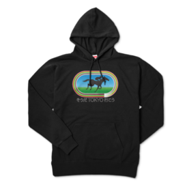 パーカー - XL - ブラック広々としたターフを駆け抜ける、競走馬を描いたデザインイラストです この商品はpixivFACTORYで作られた商品です。サンプル画像は完成イメージのため、実物と異なる場合があります。