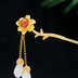 木蓮の花をイメージした簪 - 華やかなガーネットとネフライトが輝くK117