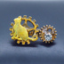 見上げる猫シルエットモチーフと歯車のスチームパンク風ブローチ ラインストーン バッジ アンティークゴールド