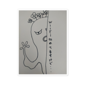 Wi-Fiが切れている事を教えてくれる妖怪のステッカーです。 目に付く場所に貼っておけば、何かしらの手続きでWi-FiをOFFにした時に戻し忘れを防げます。たぶん。
