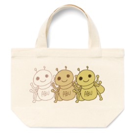 虻とおべんとうトートかわいい虻のトートバッグです。 スウェットの虻より若干シックな色味です。 しかも英字だ!おしゃれ! ・A4入れても余裕あるサイズ(私は三味線の楽譜と撥を入れます) ・虻とお弁当たべようサイズ(私は犬の散歩に持っていきます) サイズによって虻の距離感が異なります。