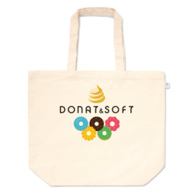 トートバッグ - L - プリント面積中ミルクたっぷりソフトクリームと、まるで五輪のようなカラフルなドーナツのデザインイラストです この商品はpixivFACTORYで作られた商品です。サンプル画像は完成イメージのため、実物と異なる場合があります。