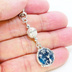 シルバーカラーの猫と星のフレームにマリンブルーのレジンでうめて彩色した可愛いチャームのキーホルダーです マリンブルーのレジンにはシルバーパウダーを散らせてチラキラ輝きをプラスさせています ラインストーン入りシルバーカラーのメタルビーズをプラスして華やかさをアップしています シルバーとマリンブルーの相性の良いカラーの組合せのコンパクトなキーホルダーに仕上がりました キーホルダーとしてはもちろんのことバッグチャームとしてもオススメのアイテムです ※素材はモチーフはレジン・合金:メッキ加工、金具はスチール製ですので金属アレルギーの方はご注意ください ※ナスカン(標準で約22mm)を大きめのサイズ(約32mm)に変更することができます 「素材」 モチーフ:亜鉛合金:メッキ加工・レジン スチール等(金具など) 「寸法」 全長(ナスカン含む):約62mm モチーフサイズ:直径約15mm 重量:約3.6グラム 【ご注意】 ※ご使用のモニターの色の違いにより、実際の商品と色味が若干異なる場合がございます NN-KEY118