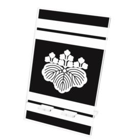 スマホスタンド 織田信長豊臣秀吉 家紋 五三の桐 黒地に白縞 指物風