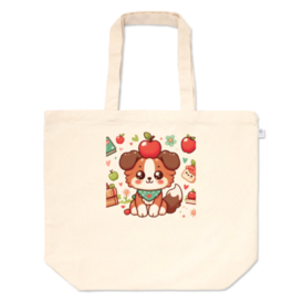 トートバッグ - L - プリント面積中この商品はpixivFACTORYで作られた商品です。サンプル画像は完成イメージのため、実物と異なる場合があります。 Dog with apple on head(リンゴを頭にのせた犬)
