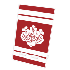 スマホスタンド 織田信長豊臣秀吉 家紋 五三の桐 赤地に白縞 指物風