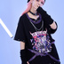Jillpunk 病みカワ アニメ風 パンク ダーク系 星座シリーズ 魔幻の盛宴 双子座 取り外し可能袖 鎖チェーン ハーネス スダッズ付き 2WAYゆったり 半袖Tシャツ カットソー メンズ レディー V系 オリジナル おしゃれ 男女兼用ファッション