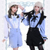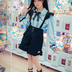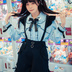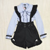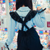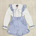 Jillpunk 量産型 天使界隈 ゆめかわ ロリータ 水色の天使 蝶ネクタイ 腕ベルト付き フリル 無地長袖ブラウス パフスリーブ 人造パールボダン ドレスシャツ ハートバックルベルト付き ウィング飾り ハイウェスト フリル キュロット サスペンダーショーツ ショート丈パンツ 可愛い おしゃれ ファッション萌え 秋葉原