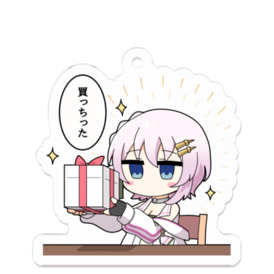御先真しろの「買っちった」アクリルキーホルダーです。 デイバッグやガンケースに サイズ 50 x 50 (mm) 付属チェーン:ナスカン この商品はpixivFACTORYで作られた商品です。サンプル画像は完成イメージのため、実物と異なる場合があります。
