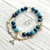 リーチ兄弟をイメージした天然石と星の2連のブレスレットです。 チャームは取り外し、付け替え可能で気分に合わせて変えてみたりご自由にご使用下さい ジェイド→ハート/フロイド→尾ひれ チャームはそれぞれのユニーク魔法をイメージして選びました! ブレスレットも天然石と星のチャームチェーンは別々なので、単体でも付けられます(8枚目参照) ※ブレスレットは手芸用の伸びるオペロンゴム(0.8㎜)を二重にして作っていますが、長く使っていただけるよう、無理に伸ばしたり力強く引っ張ったりしないようにお願いします。 周囲:天然石ブレスレット約16cm 長さ:チャームブレスレット約15cm+アジャスター約5cm 使用した天然石(8mm):9枚目タイガーアイ/10枚目ターコイズ/11枚目シトリン