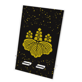 スマホスタンド豊臣秀吉 豊臣秀頼 家紋 五七の桐 黒に金粉ちりばめ