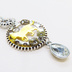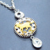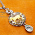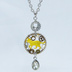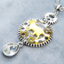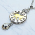 アンティークシルバー 歩く猫モチーフと大きめ歯車のスチームパンク風ネックレス ティアドロップ ラインストーン 長さ変更可