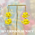 ベラが船上と娼館で着ていたボリュームのある黄色いフリルのケープをモチーフにしたピアスです。 クリア&不透明黄色がマーブルになっているベースにゴールドのペイントが施されている花の形のビーズを透け感のあるテキスタイルのフリルに見立てています。 花のビーズだけでは透け感と燻んだ色味でぼんやりした印象になってしまうので、丸いビーズでビビッドな色味・ツヤ・ミニマル感の強さのパキッとしたニュアンスを足しています。 花のビーズ・丸いビーズ共にチェコビーズ(ガラス)を使用しています。 『イエローは身に付けた事がない&普段は青系やデニム系の服を選ぶことが多い』という方には是非チャレンジしてみてもらいたいカラーリングです🩵 長さ : (ピアス金具含む) 4cm