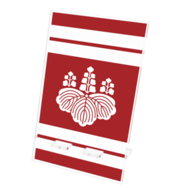 スマホスタンド豊臣秀吉 豊臣秀頼 家紋 五七の桐 赤地に白縞 指物風