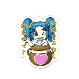 アクリルキーホルダー 線画縁取り- 70 x 70 (mm)「魔物娘と不思議な冒険2」より、魔物娘さんたちのアクリルキーホルダーになります。 こちらは、合成に対価を求めるポットフェアリーさんです。 合成してもらうんですから・・・誠意は大事です! 円形に縁取ったものと、線画周りを縁取ったものとなります。 サイズも2種類あるのでご確認の上ご購入お願いします。 製作にあたり、作者様のねことかげ氏よりキャラの使用許可はいただいております。 公式の販売物ではなく、あくまで麗鳳のイラストによる二次創作グッズとなりますのでご了承お願い致します。 細かいディテールの違いや色味の違いがあるかと思いますが、魔物娘さんたちの個体差ということでよろしくお願いします。