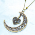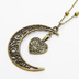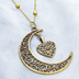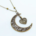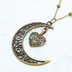 アンティークゴールド 透かし三日月とハートの大人可愛いネックレス ムーン ロングチェーンネックレス