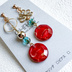 「原神」より楓原万葉をイメージするアシンメトリーイヤリングorピアスです。 濃いめの赤にゴールドの不規則なラインを入れたインクアートアクセサリーです。 和モダンの様なアシンメトリーデザインに、水引きの様なパーツを組み合わせてカジュアルにも使えるようにしました。 ※イヤー金具変更をご希望の場合はご購入の際コメントにお書き下さい。 ※2枚目の写真が今回頒布する作品となります。 ※模様は選べない為、どの模様が届いてもOKな方のみご購入をお願い致します。 ■素材 レジン ■サイズ 幅約1.7cm、長さ約6cm ■イヤー金具 基本:ネジバネイヤリング(ニッケルフリー) 金具変更可能。 →ポストピアス(サージカルステンレス316L※ニッケルフリーメッキ) ※イヤー金具の指定が無い場合は上記基本のイヤー金具でお届け致します。 ※ゴールド色のイヤー金具につきまして、ステンレスやサージカルステンレスの素材でも、基本ニッケルフリーメッキでコーティングされている為了承の上で選択ください。 ■配送 クリックポスト ※基本毎週水曜日に発送(年末年始や祝日は前後するためご注意下さい)