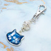 ブルーキャットスターキーホルダー 青い猫フェイスモチーフに星を散りばめたキーホルダー メタルビーズ 金具変更可