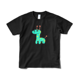 この商品はpixivFACTORYで作られた商品です。サンプル画像は完成イメージのため、実物と異なる場合があります。 宇宙キリンのTシャツです。