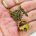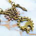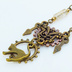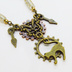 アンティークゴールド 跳ね猫と歯車のスリムなスチームパンク風ロングチェーンネックレス 長さ調整可 アジャスター可