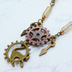 跳ね猫シルエットモチーフと歯車を組合せたスチームパンク風ネックレスです 中心にはアンティークブロンズの歯車を使用してカラー彩りを加えています チェーンには異なるカラー・形状・大きさのメタルビーズを組合せて左右で異なる配置にしたアシンメトリー感を演出しています 長さはゆったりサイズの約50cmのロングチェーンタイプにしてあります ご要望に応じて長さを5cm単位で短くすることも可能です(45cmもしくは40cm)お取引の際にコメントをお書きください スチームパンク風とはいえ普段使いにもご利用いただけるようスリムでスタイリッシュなネックレスに仕上げています 媚びない大人可愛いを目指した猫好きのためのネックレスです ※別カラーバージョンもございます ※モチーフなどは亜鉛合金にメッキ加工、ネックレスのチェーンは鉄製にメッキ加工、金具などはスチール製ですので、金属アレルギーの方はご注意ください ※チェーンの長さは標準で約50cmですが無料にて45cmもしくは40cmに変更いたします ※アジャスター(約5cm)を追加できます 「素材」 チャーム:亜鉛合金:メッキ加工・レジン メタルビーズ:真鍮。スチールなど チェーン:アイアン:メッキ加工 スチール等(金具など) 「寸法」 猫サイズ:約15mm×15mm 歯車サイズ:直径約20mm チェーン長さ:約50cm 重量:約14.1グラム 「ご注意」 ※ご使用のモニターの色の違いにより、実際の商品と色味が若干異なる場合がございます NN-NK241